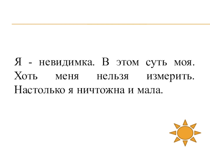 Слайд 22Я - невидимка. В этом суть моя. Хоть меня нельзя измерить.