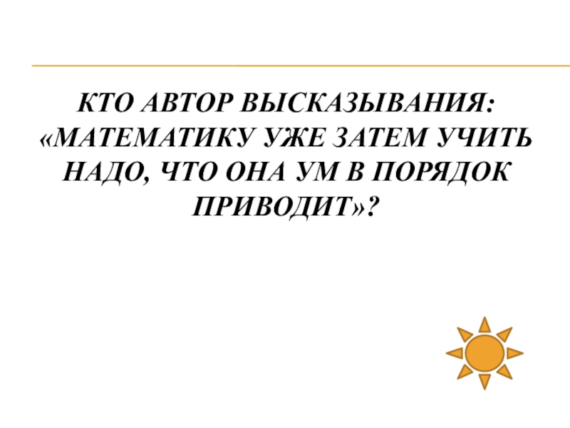 Слайд 3Кто автор высказывания: «Математику уже затем учить надо, что она ум