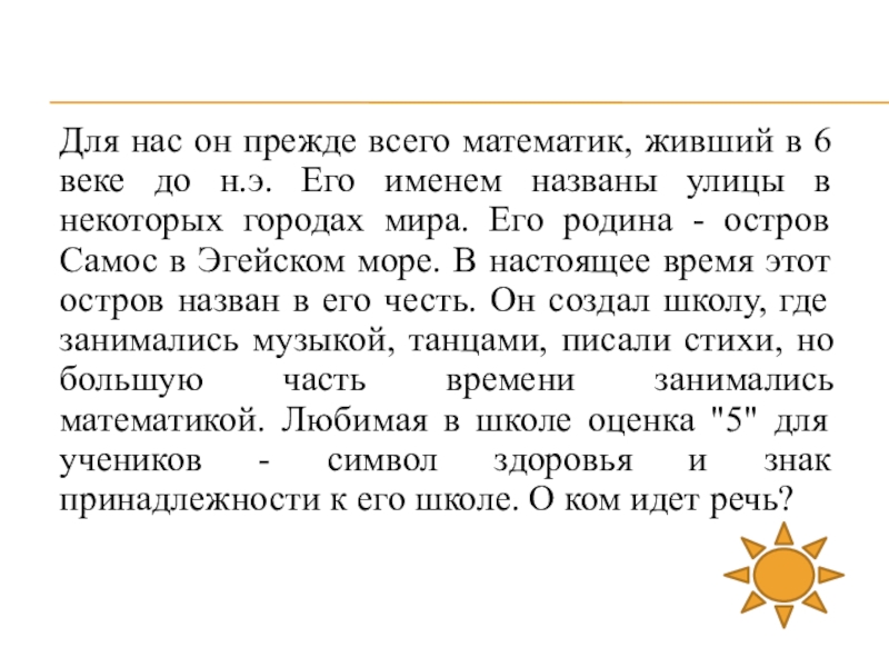 Слайд 7Для нас он прежде всего математик, живший в 6 веке до