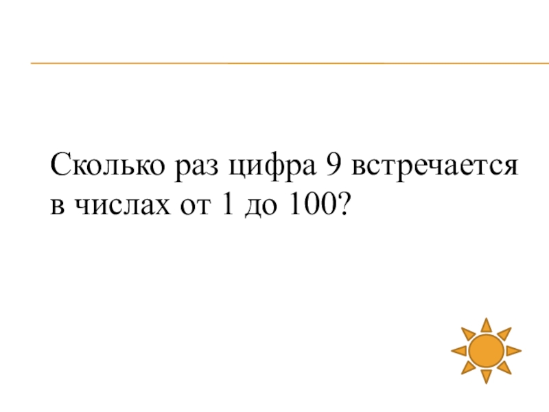Слайд 17Сколько раз цифра 9 встречается в числах от 1 до 100?
