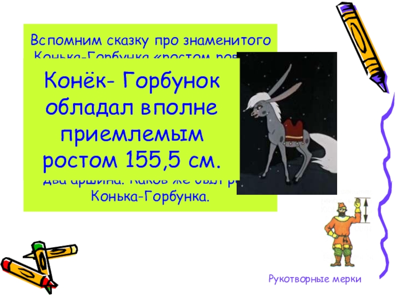 Конёк- Горбунок обладал вполне приемлемым ростом 155,5 см.
