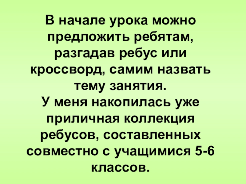 Слайд 12В начале урока можно предложить ребятам, разгадав ребус или кроссворд, самим