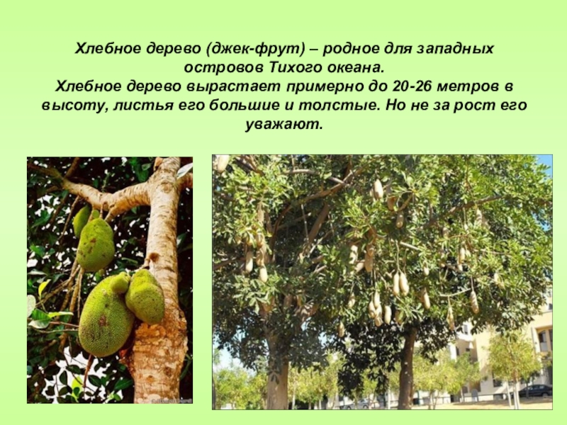 Слайд 40Хлебное дерево (джек-фрут) – родное для западных островов Тихого океана.