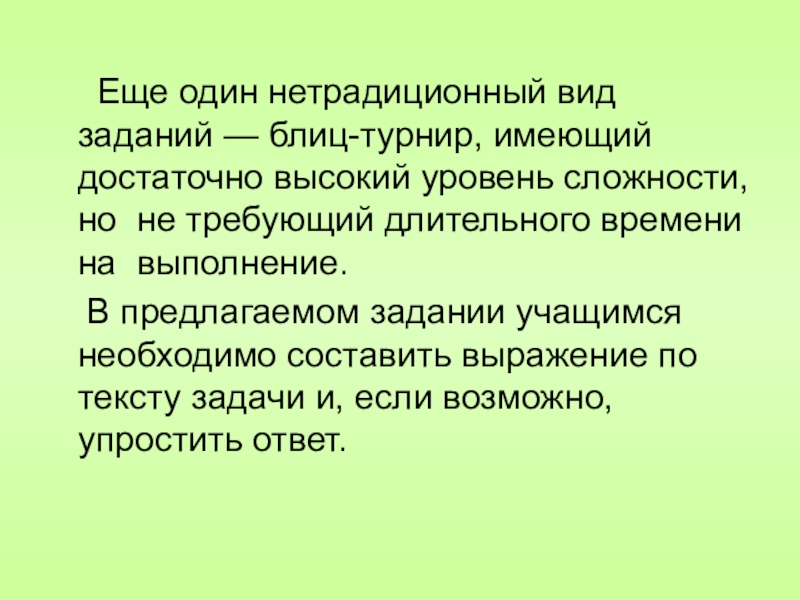 — блиц-турнир, имеющий достаточно высокий уровень сложности, но не требующий длительного времени на выполнение.