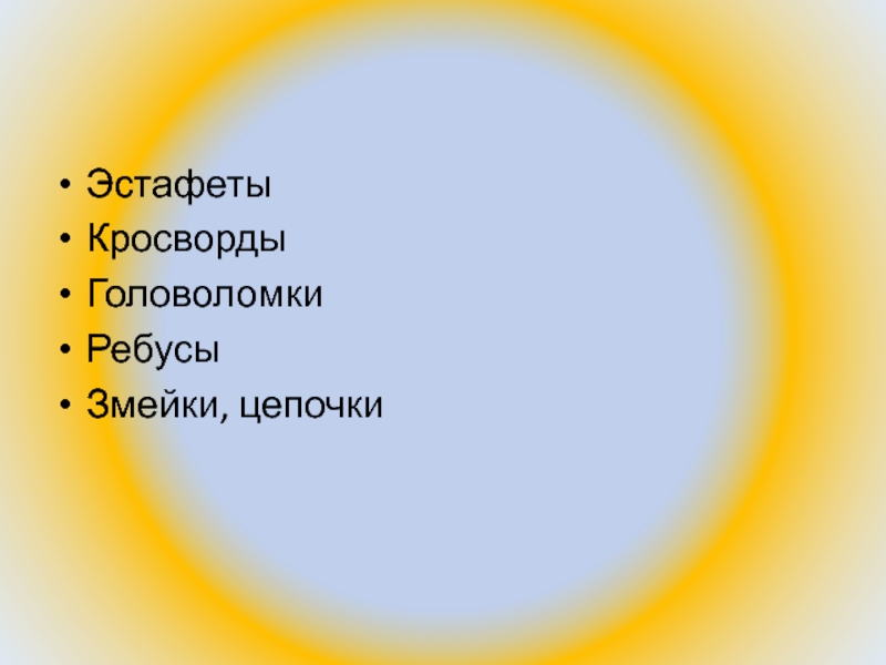 ЭстафетыКросвордыГоловоломкиРебусыЗмейки, цепочки