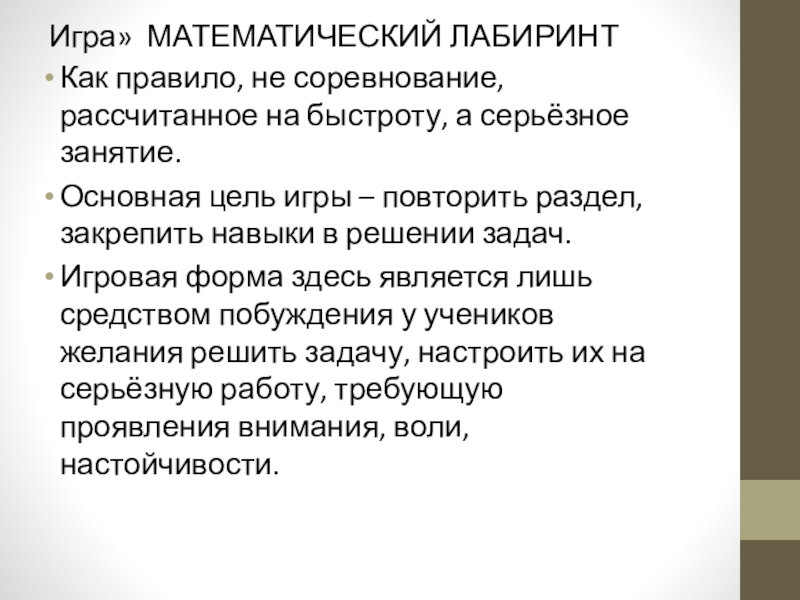 Слайд 18Игра» МАТЕМАТИЧЕСКИЙ ЛАБИРИНТ