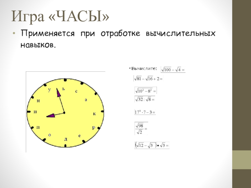Основная цель игры – повторить раздел, закрепить навыки в решении задач.