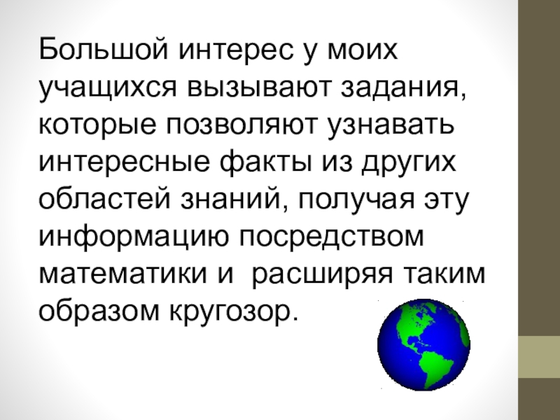 Слайд 12Большой интерес у моих учащихся вызывают задания, которые позволяют узнавать интересные