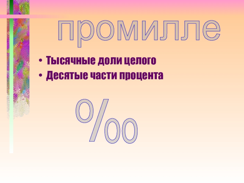 Тысячные доли целогоДесятые части процентапромиллео/оо