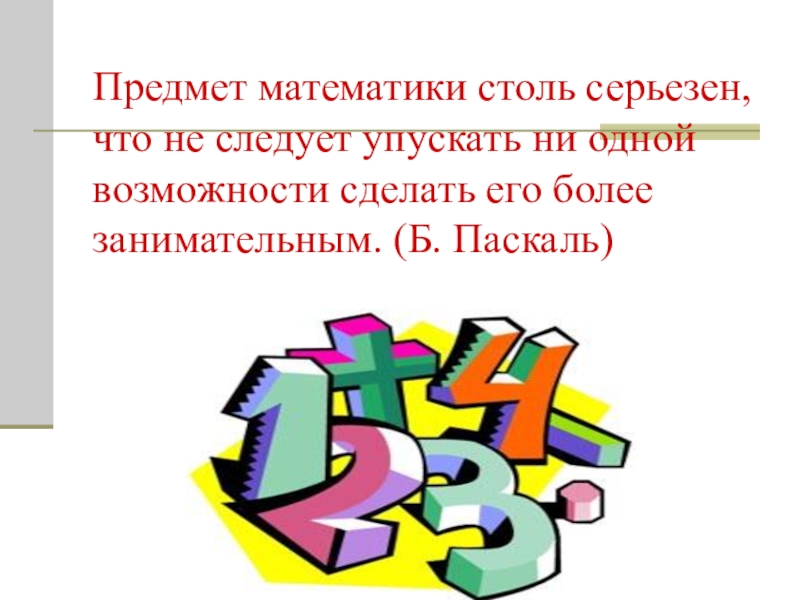 Слайд 21Предмет математики столь серьезен, что не следует упускать ни одной возможности