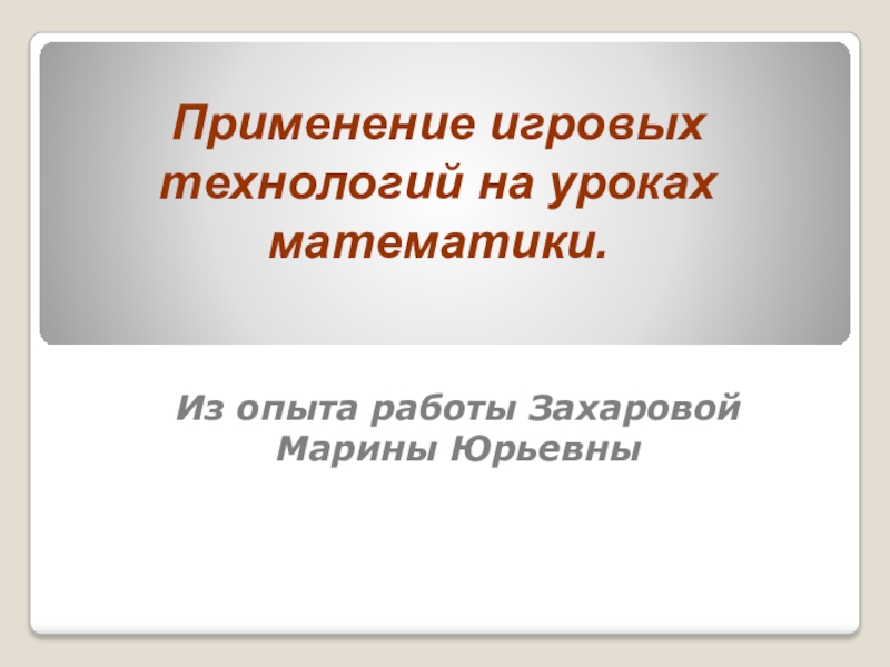 Применение игровых технологий на уроках математики.Из опыта работы Захаровой Марины Юрьевны