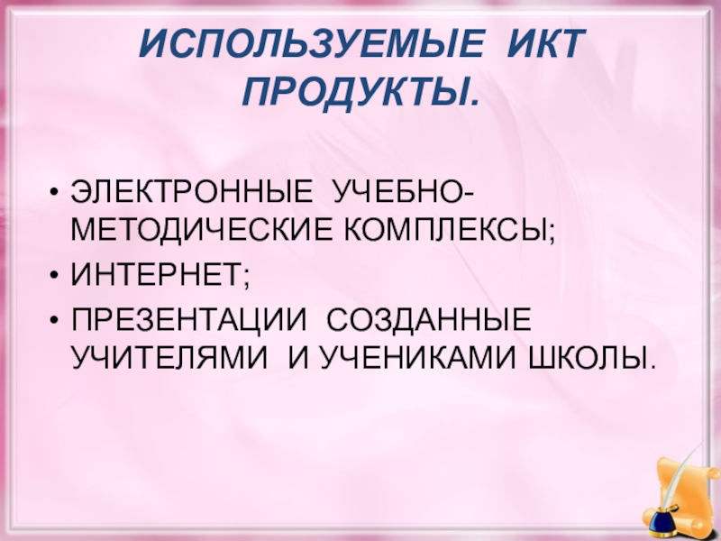Слайд 22ИСПОЛЬЗУЕМЫЕ ИКТ ПРОДУКТЫ.