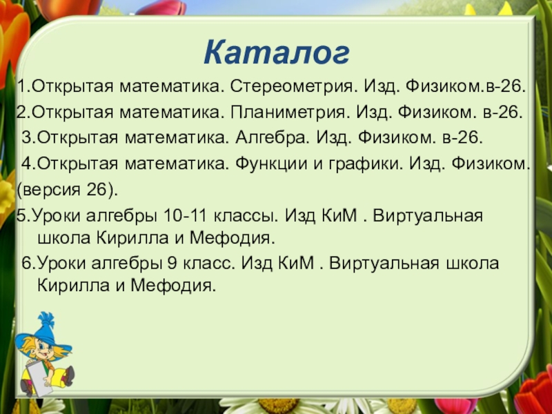 5.Уроки алгебры 10-11 классы. Изд КиМ . Виртуальная школа Кирилла и Мефодия.