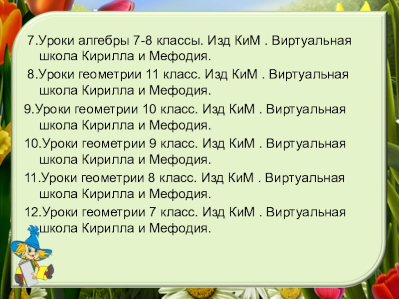 7.Уроки алгебры 7-8 классы. Изд КиМ . Виртуальная школа Кирилла