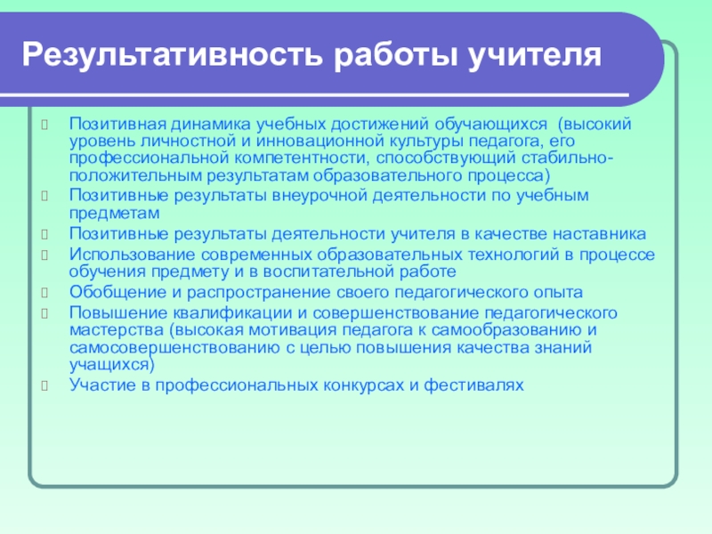 Результативность работы учителя