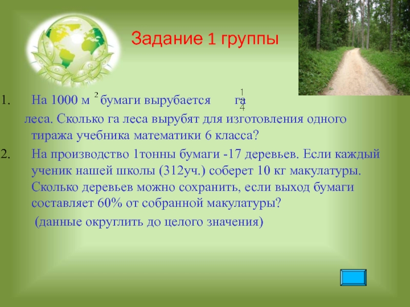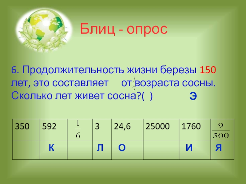 Одно дерево в сутки вырабатывает 180л кислорода, это составляет 0,9 необходимого кислорода ребенку. Сколько деревьев должно расти целыми и невредимыми, чтобы учащиеся нашей школы (312уч.) могли дышать чистым воздухом?