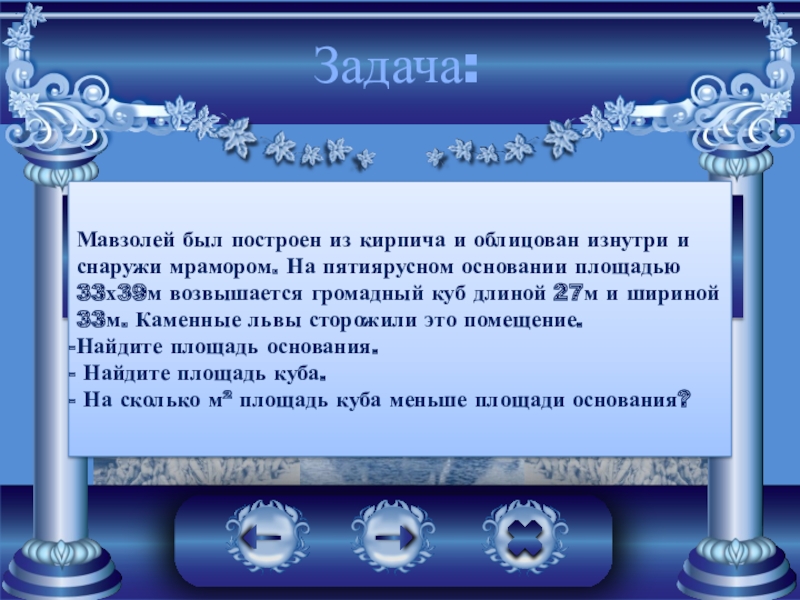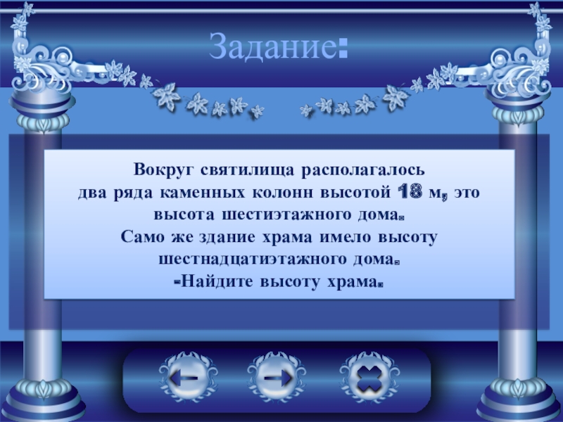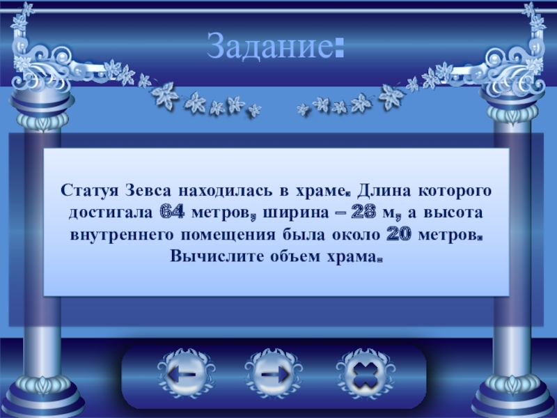 – 28 м, а высота внутреннего помещения была около 20 метров. Вычислите объем храма.