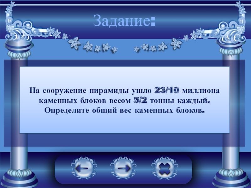 На сооружение пирамиды ушло 23/10 миллиона каменных блоков весом 5/2 тонны