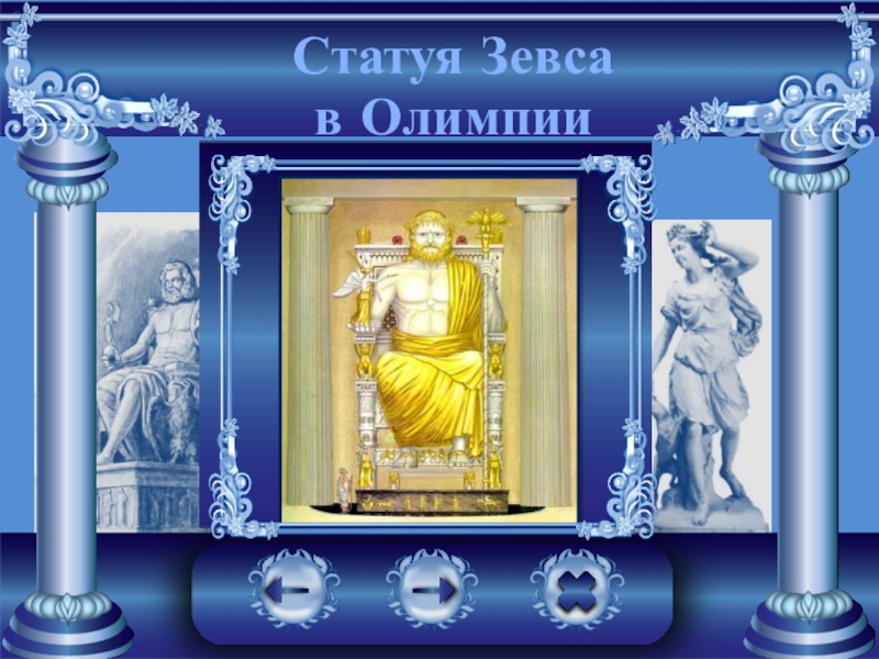 Статуя Зевса находилась в храме. Длина которого достигала 64 метров, ширина