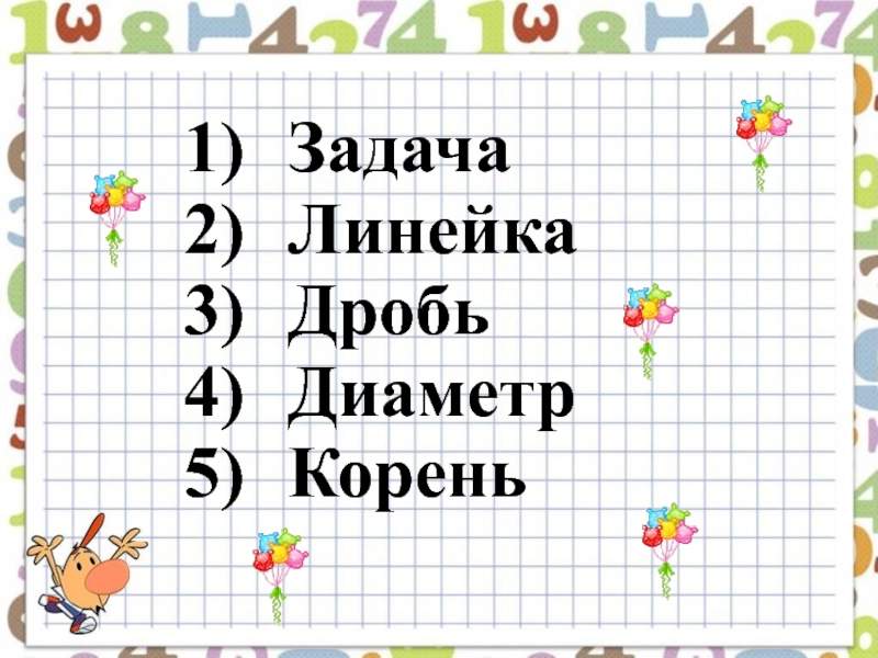 ЗадачаЛинейкаДробьДиаметрКорень