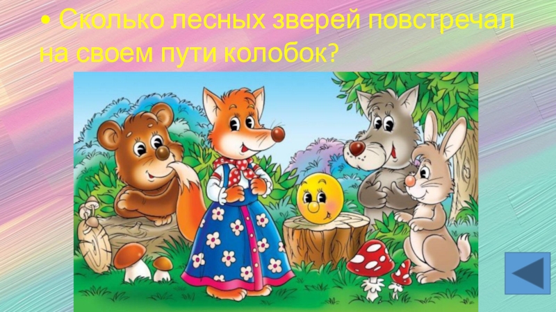 • Сколько лесных зверей повстречал на своем пути колобок?
