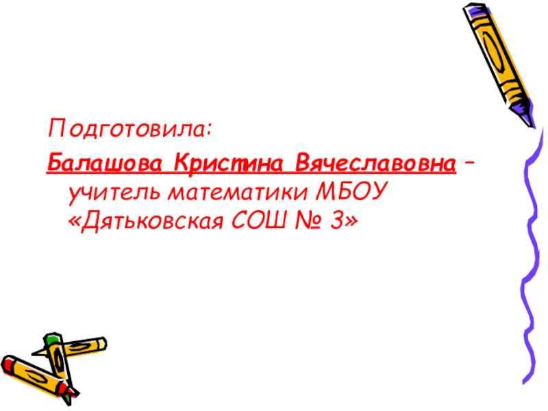 Подготовила: Балашова Кристина Вячеславовна – учитель математики МБОУ «Дятьковская СОШ № 3»