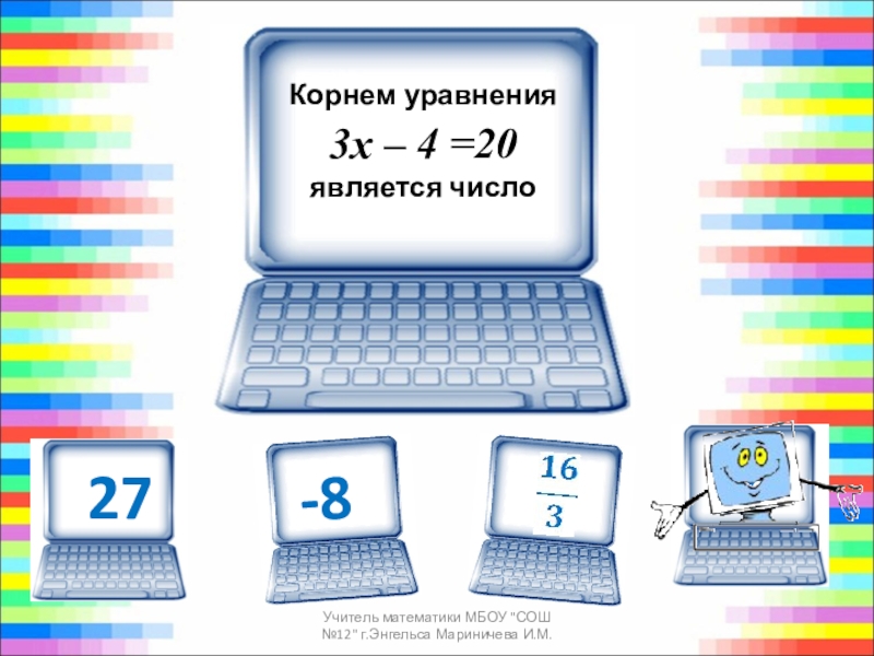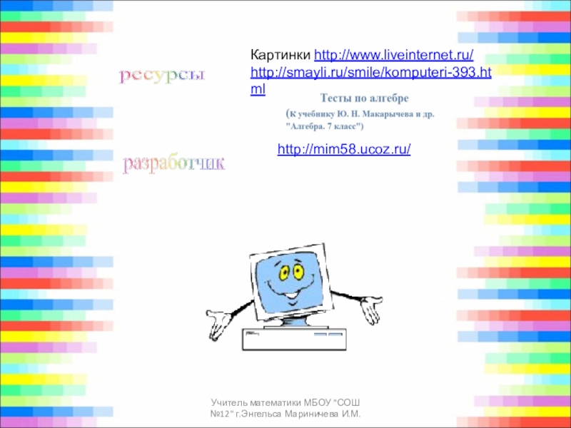 Учитель математики МБОУ "СОШ №12" г.Энгельса Мариничева И.М.