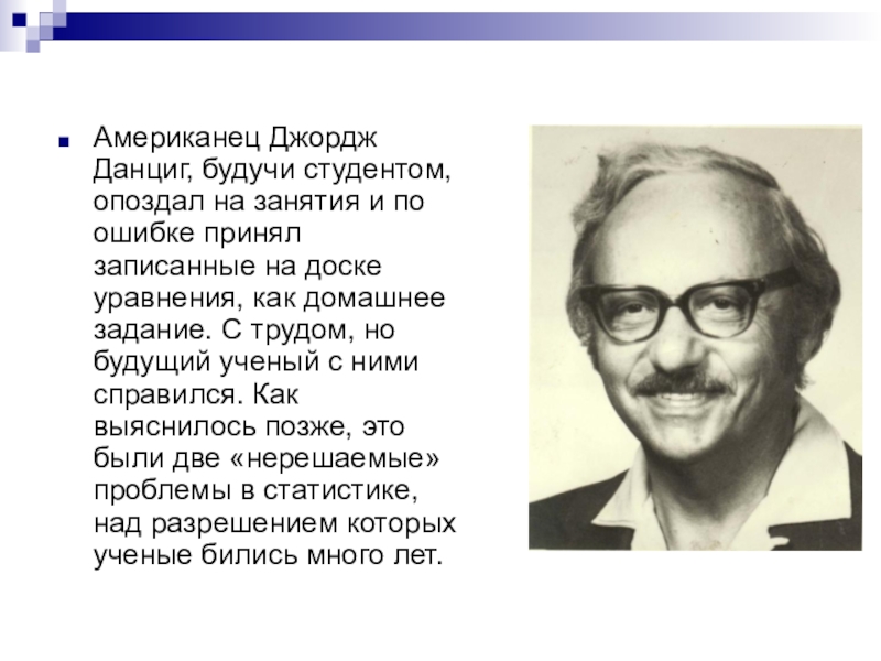 Американец Джордж Данциг, будучи студентом, опоздал на занятия и по ошибке