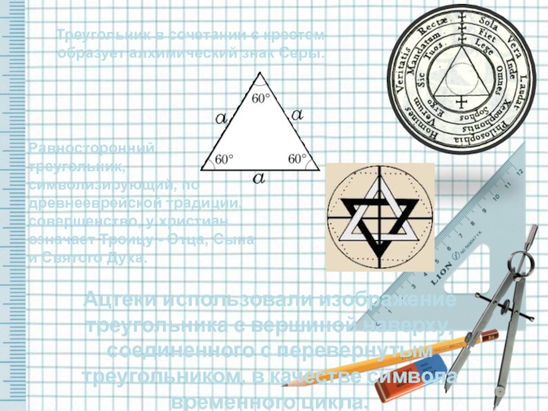 Треугольник в сочетании с крестом образует алхимический знак Серы.