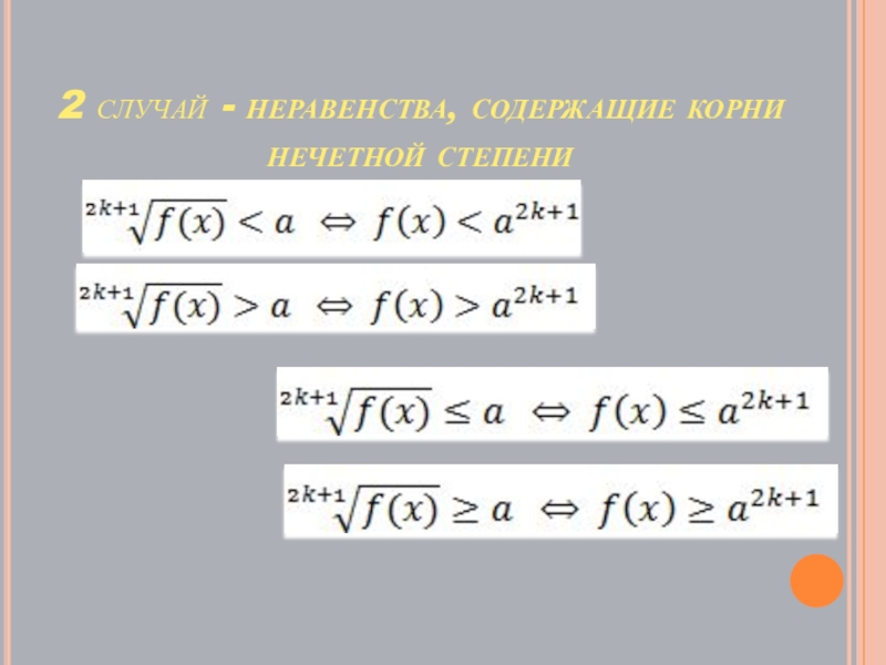 Слайд 42 случай - неравенства, содержащие корни нечетной степени