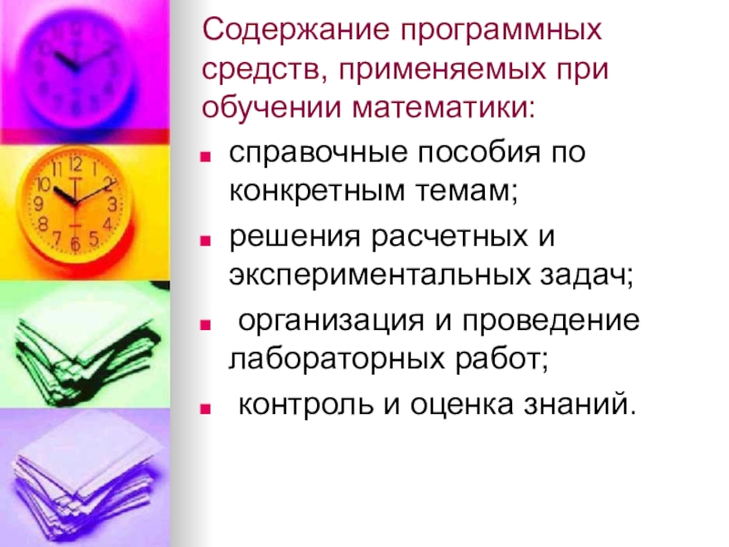 Слайд 7Содержание программных средств, применяемых при обучении математики: