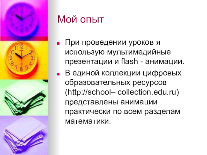 В единой коллекции цифровых образовательных ресурсов (http://school– collection.edu.ru) представлены анимации практически по всем разделам математики.