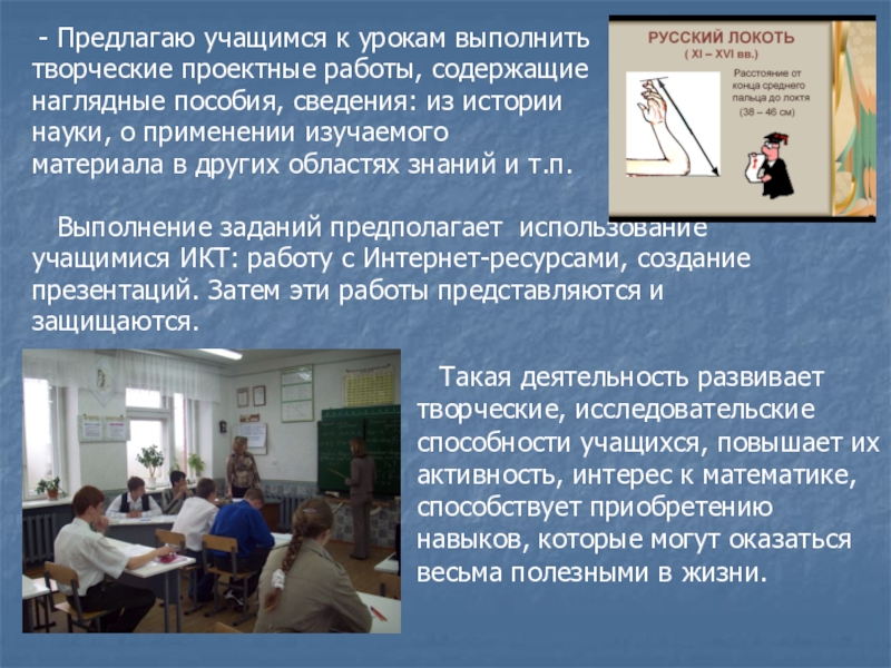 Такая деятельность развивает творческие, исследовательские способности учащихся, повышает их
