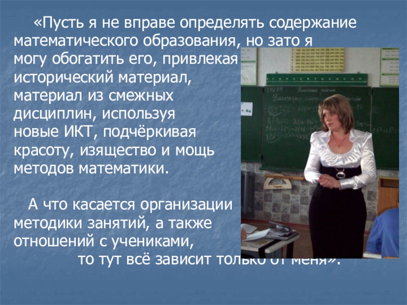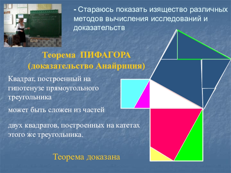 - Стараюсь показать изящество различных методов вычисления исследований и доказательств