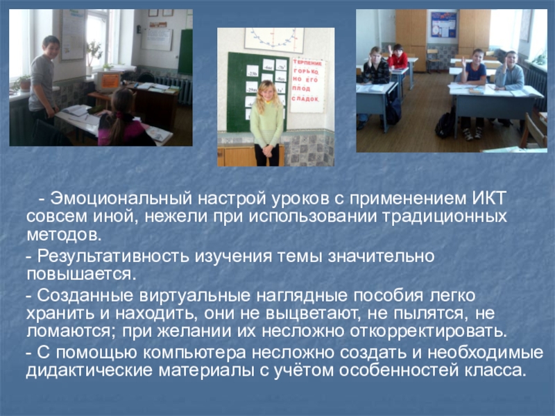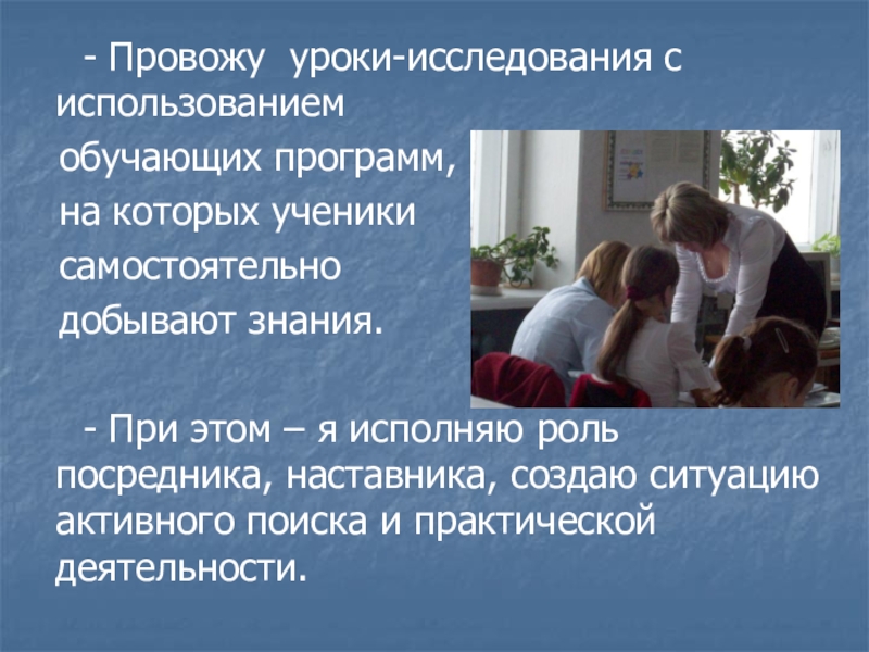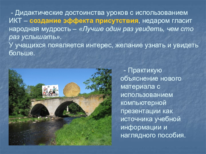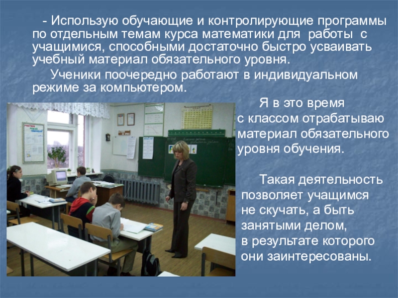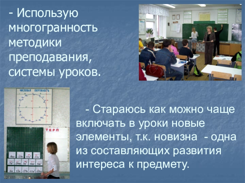 - Практикую объяснение нового материала с использованием компьютерной презентации как источника учебной информации и наглядного пособия.