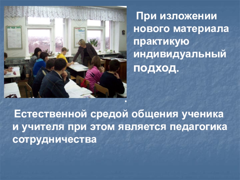 Естественной средой общения ученика и учителя при этом является педагогика сотрудничества