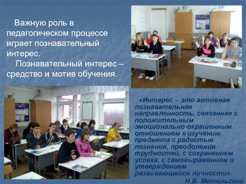 Важную роль в педагогическом процессе играет познавательный интерес.