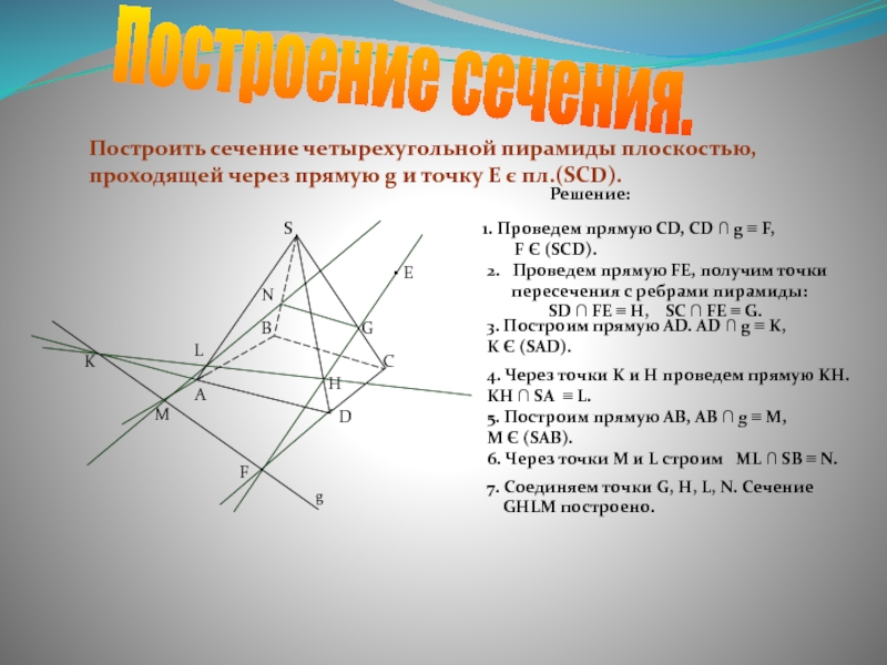7. Соединяем точки G, H, L, N. Сечение