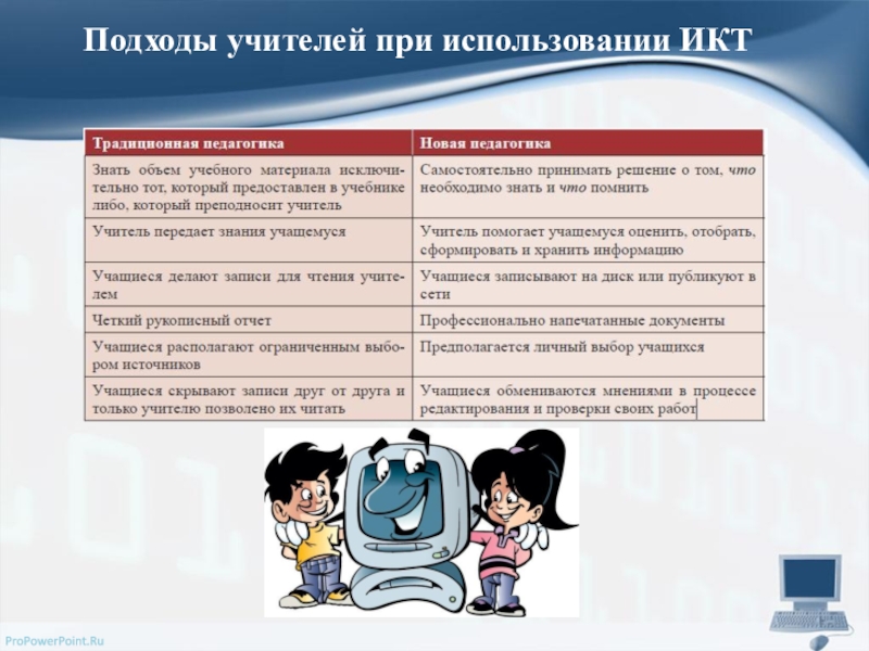 Слайд 7Подходы учителей при использовании ИКТ
