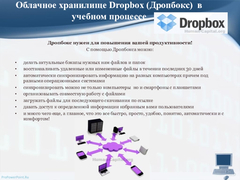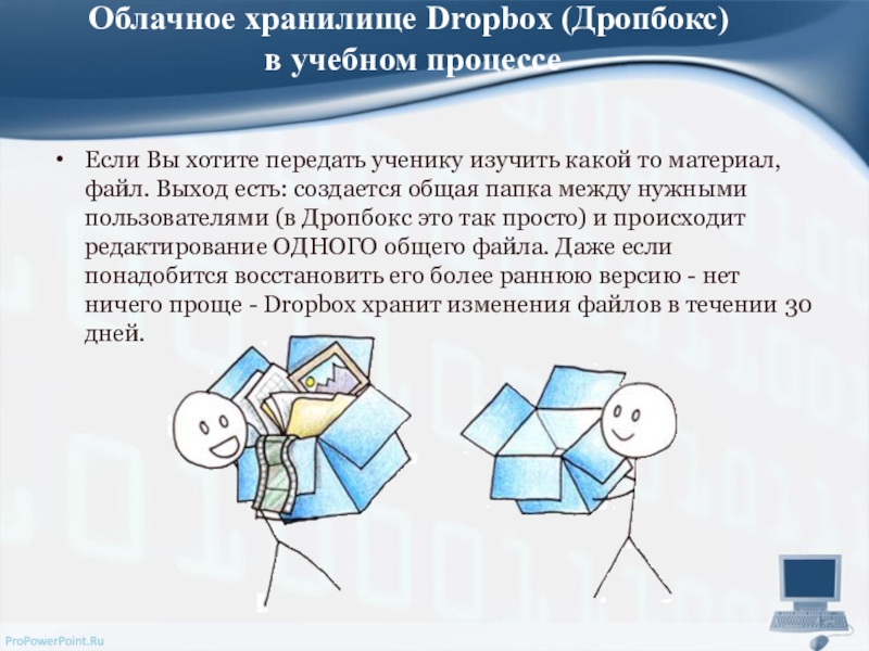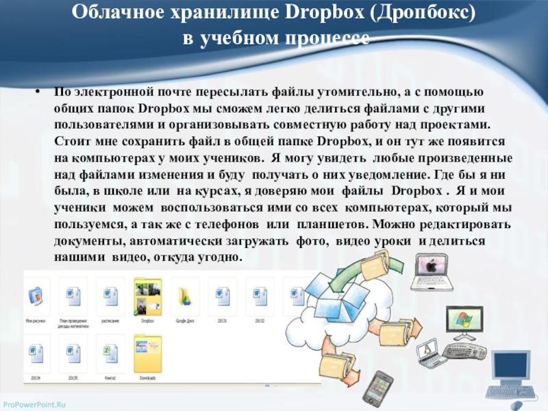 Слайд 8Облачное хранилище Dropbox (Дропбокс) в учебном процессе