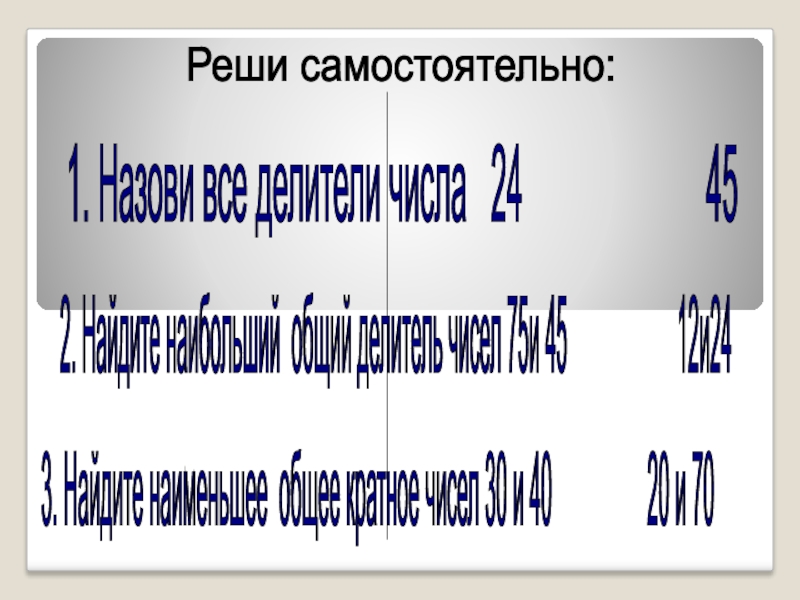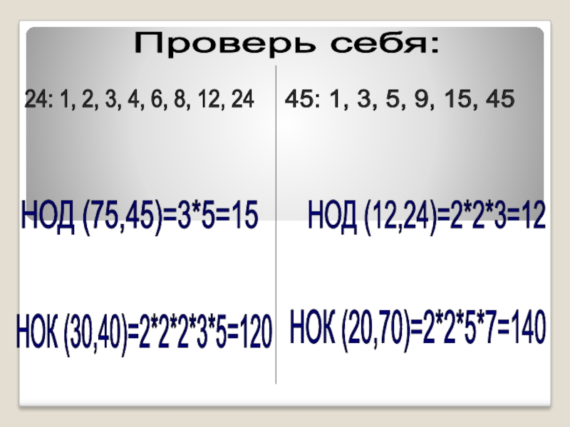 2. Найдите наибольший общий делитель чисел 75и 45 12и24