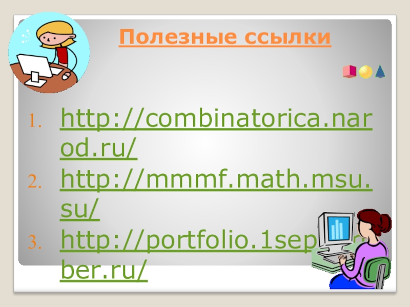 . Виленкин Н.Я. «Индукция. Комбинаторика», М. «Просвещение», 1976 г.