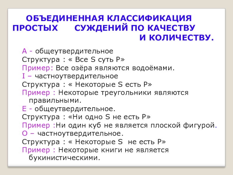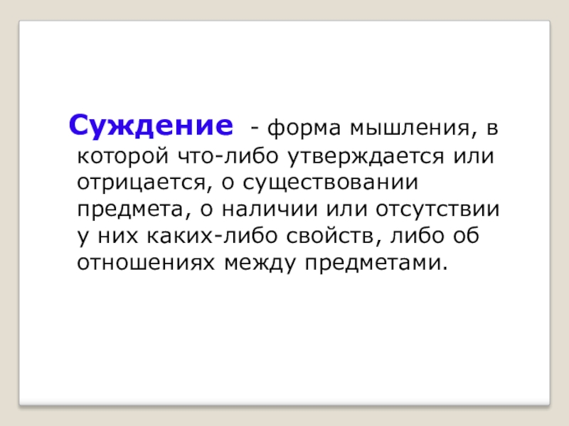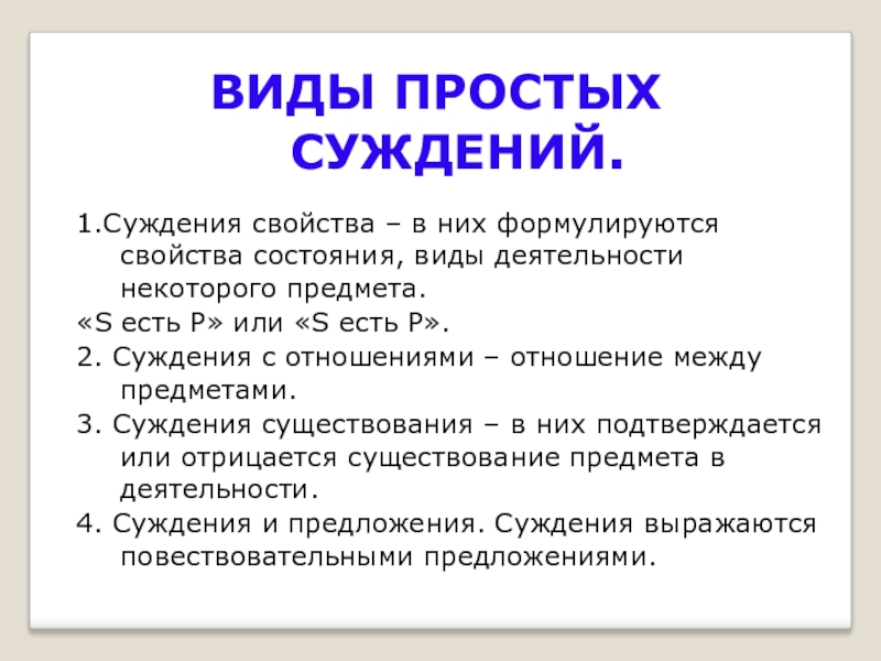 1.Суждения свойства – в них формулируются свойства состояния, виды деятельности некоторого предмета.