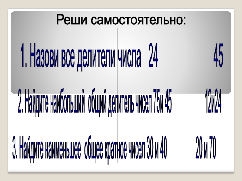 2. Найдите наибольший общий делитель чисел 75и 45 12и24