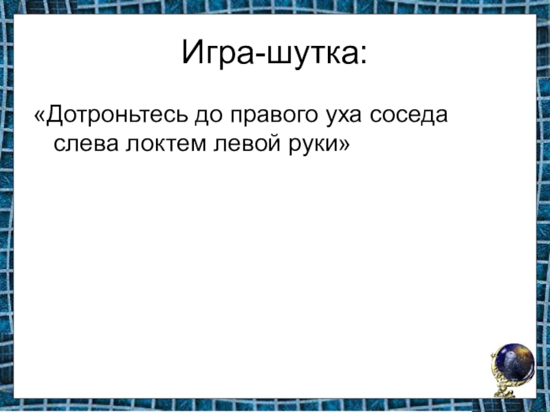 «Дотроньтесь до правого уха соседа слева локтем левой руки»