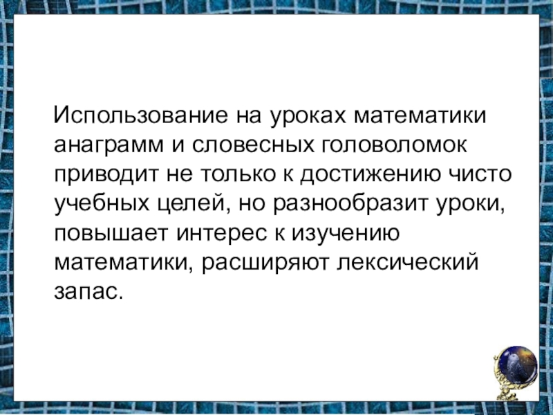 Использование на уроках математики анаграмм и словесных головоломок приводит