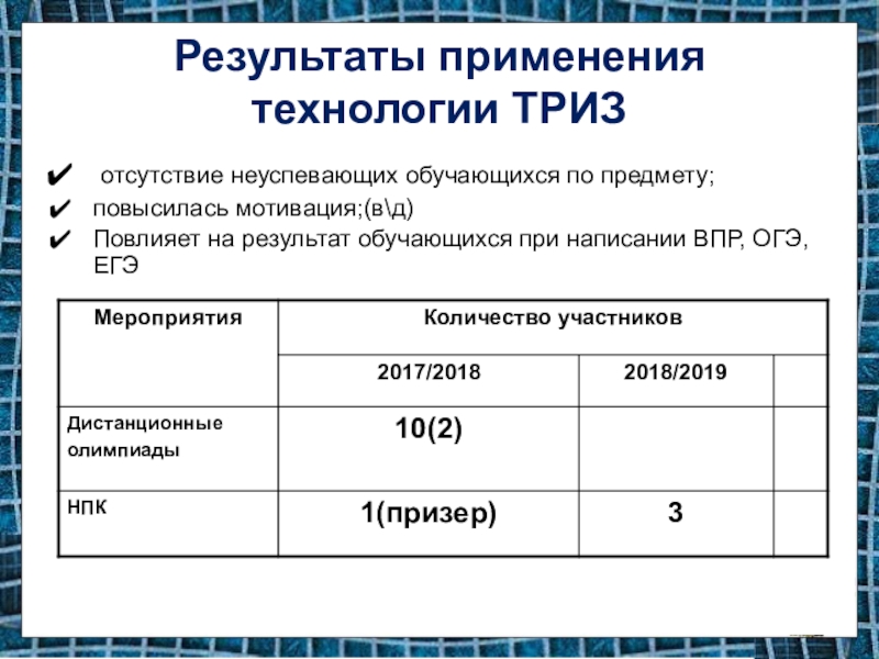 Слайд 28Результаты применения технологии ТРИЗ