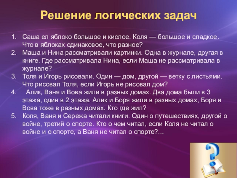 Слайд 25Решение логических задач