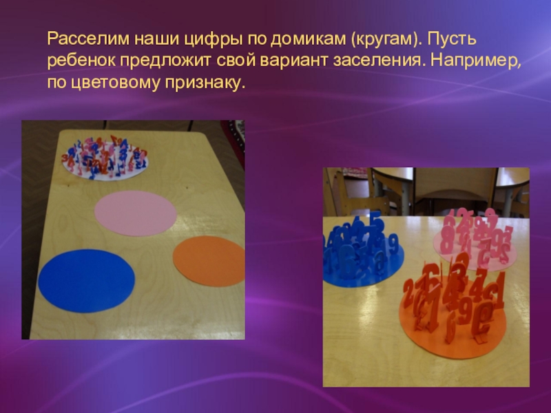 Расселим наши цифры по домикам (кругам). Пусть ребенок предложит