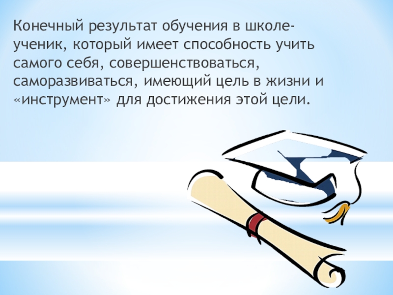 Слайд 9Конечный результат обучения в школе-ученик, который имеет способность учить самого себя,